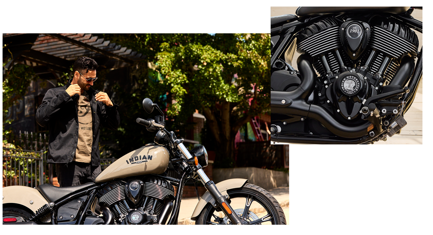 De cruisers van Indian Motorcycle zijn krachtige, met mechanische middelen ontworpen motorfietsen met een tijdloze stijl. Een gestroomlijnde look zonder toevoeging is de regel, met lederen tassen of een windscherm als uitzondering.